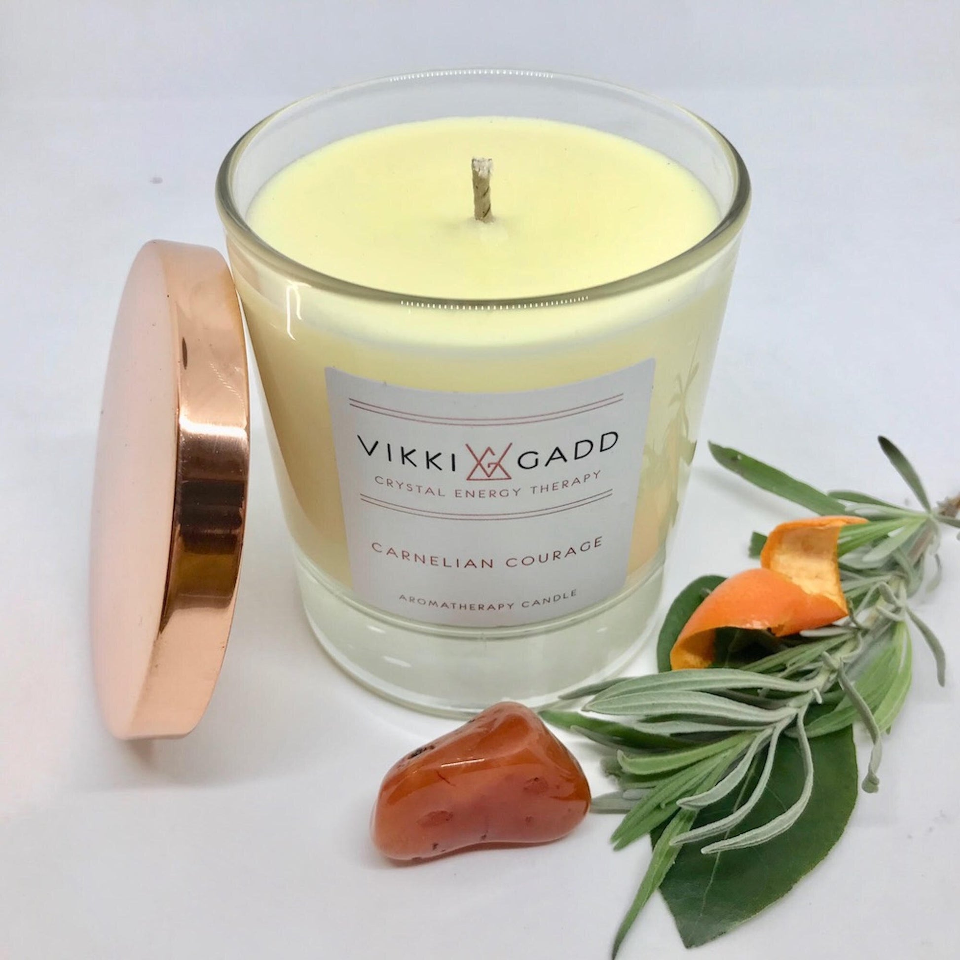 An empowering luxury healing candle filled with Orange, Vertiver, Bergamot and other secret pure essential oils delicately blended to surround you with powerful woody fresh fruity scents with a Carnelian hidden gem to fill you with power and courage.
